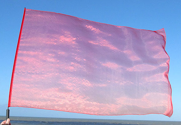 Het is belangrijk om voorzichtig om te gaan met de aanbiddingsvlag. Organza is een gevoelige stof. Het is mogelijk om de vlag te strijken op de zijde stand van de strijkbout. De stok is gemaakt van hoog kwaliteit koolstof, maar is wel breekbaar door onzorgvuldig gebruik, zoals per ongelijk tegen een muur slaan of erop te staan.