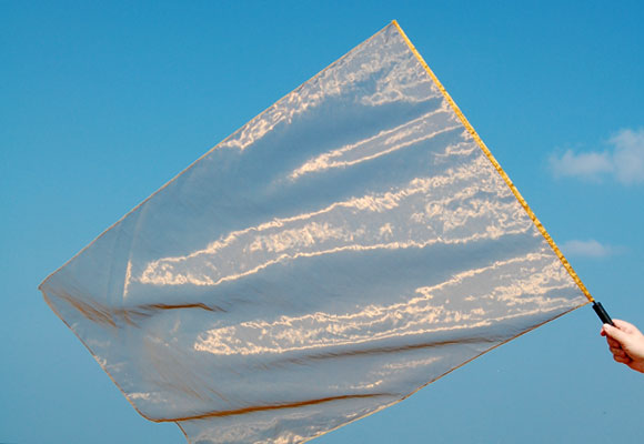 Het is belangrijk om voorzichtig om te gaan met de aanbiddingsvlag. Organza is een gevoelige stof. Het is mogelijk om de vlag te strijken op de zijde stand van de strijkbout. De stok is gemaakt van hoog kwaliteit koolstof, maar is wel breekbaar door onzorgvuldig gebruik, zoals per ongelijk tegen een muur slaan of erop te staan.
