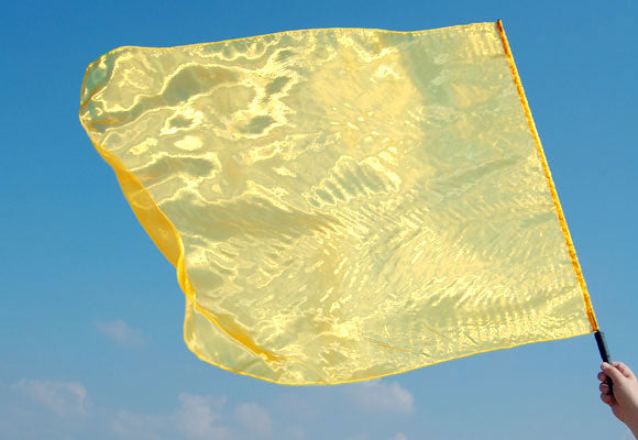 Het is belangrijk om voorzichtig om te gaan met de aanbiddingsvlag. Organza is een gevoelige stof. Het is mogelijk om de vlag te strijken op de zijde stand van de strijkbout. De stok is gemaakt van hoog kwaliteit koolstof, maar is wel breekbaar door onzorgvuldig gebruik, zoals per ongelijk tegen een muur slaan of erop te staan.